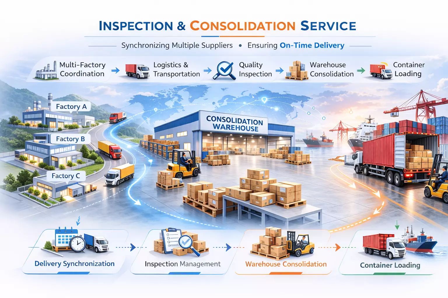 No matter how many product categories or factories are involved, we handle inspection, consolidation, and container loading in one streamlined process — so you can ship confidently without managing multiple steps.